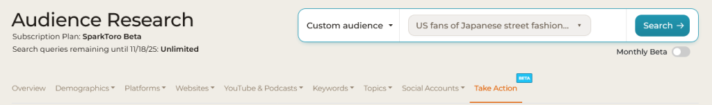 - Making the connection between our audience’s behaviors and our marketing actions requires a lot of extra work (export SparkToro report, analyze, make assessments, upload to other systems, etc.)