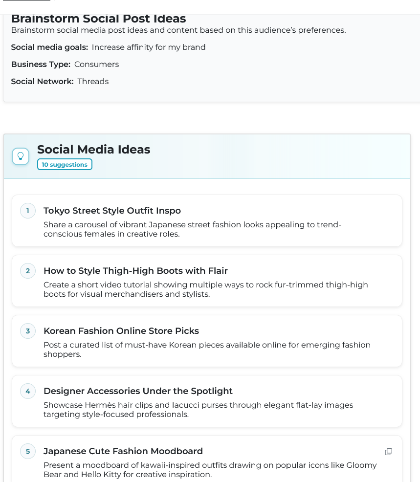 #6: BOOM. Common marketing tasks + real audience data + the efficiency of AI = complete. And the output is automatically saved in your SparkToro account π§ π‘