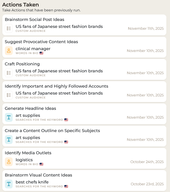 You’ll find all your previous “Take Action” outputs on your dashboard and in your Actions Taken page: