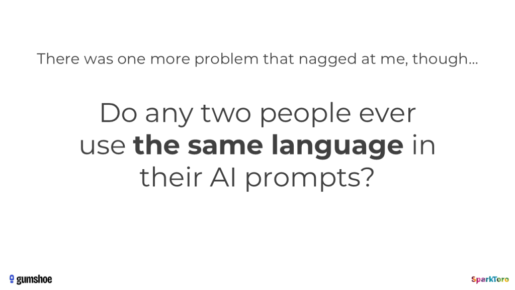 Before we completely rule out the reasonableness of AI visibility as a metric, we need to see if those highly varied, human-created AI prompts produce lists of brands in the AI tool responses that are way off of what we’d see in a synthetic set or in the initial sets of arbitrary prompts everyone used. This would be the final test: if all those Kung Pao Chicken and Peanut Butter prompts (which are actually about which headphones to buy for a family member) produced repeatedly similar results, AI visibility tracking might not be entirely snake oil.