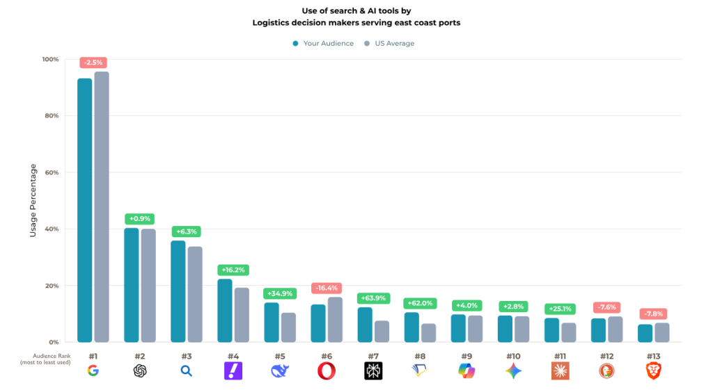 Speaking of… we at SparkToro have been guilty of this exact fallacy. When I received this data, I immediately emailed my cofounder, Casey Henry, and as of today, we’ve updated our Search and AI Tool usage graphs to be search-focused rather than visit-centric. After all, if you’re investigating an audience, you care about where they search/prompt, not whether they visit and leave (or even just check their API credits).