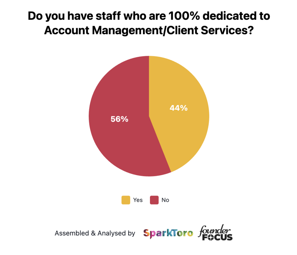 An ongoing question that many agency owners ask themselves is whether they should have dedicated account managers or not. The results were almost split down the middle, but tilted towards agencies not having account managers: