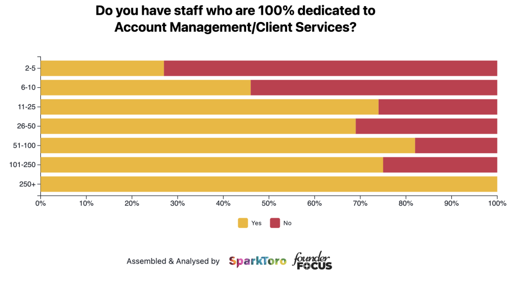 This does appear to change if we segment by agency size, with larger agencies leaning much more heavily towards needing account managers: