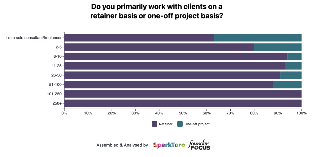 This is generally true amongst most agencies, regardless of size. However it is worth noting that solo consultants and freelancers are much more likely to work on a one-off project basis.