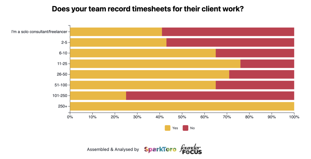 If we segment by agency size, we do see a slow, but clear trend that with team size increasing, the higher likelihood that timesheets will be used.