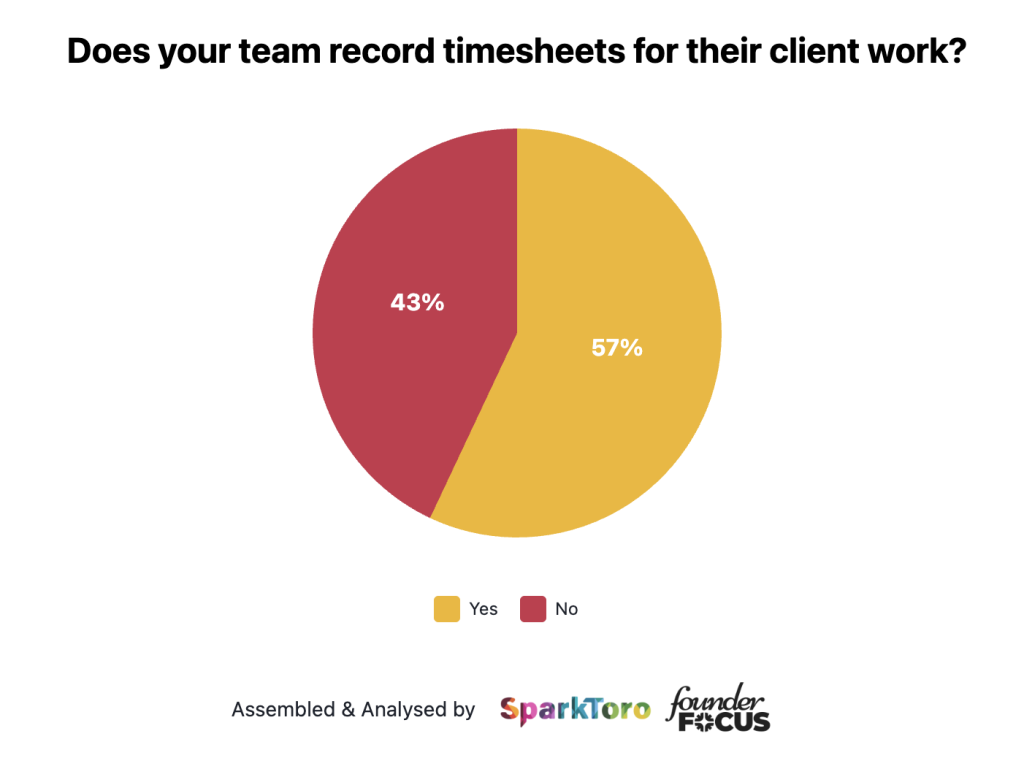 There is a slight tilt toward using timesheets, with 57% saying that their team does indeed record them.