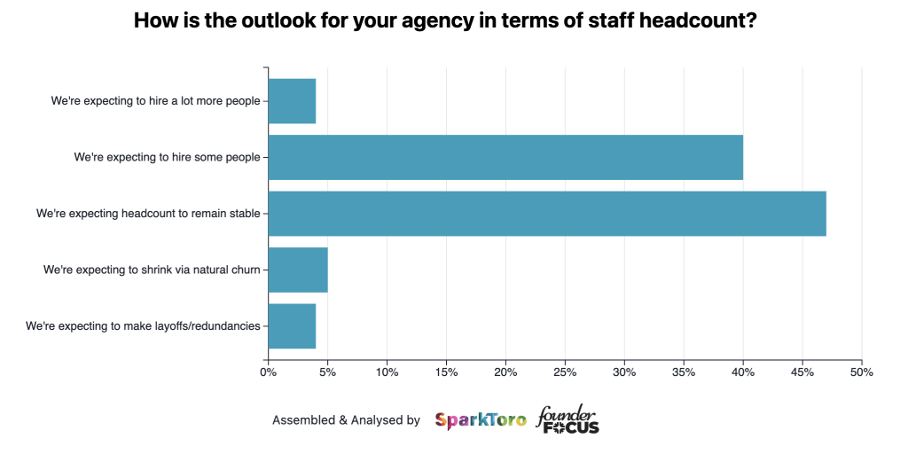 Generally, sentiment on this topic appears to be positive compared to 2024. Agencies are reporting that headcount has grown a little and that they plan to hire more folks over the next 12 months. Agencies are also reporting that they are generally working with clients for longer, which is a positive sign.