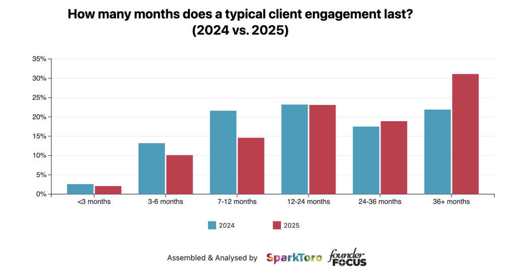 Having said that, a decent chunk (25%) will work with clients for less than 12 months.