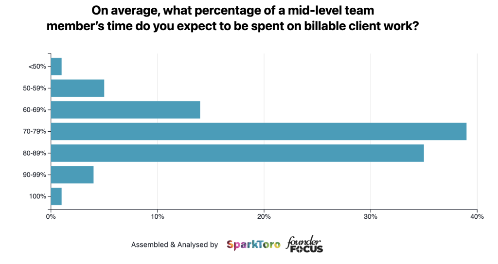 The most popular utilization targets are 70-79% with 39% of agencies setting this as a target for a typical mid-level team member. This was followed by 35% of agencies setting a slightly higher target of 80-89% utilization of time.