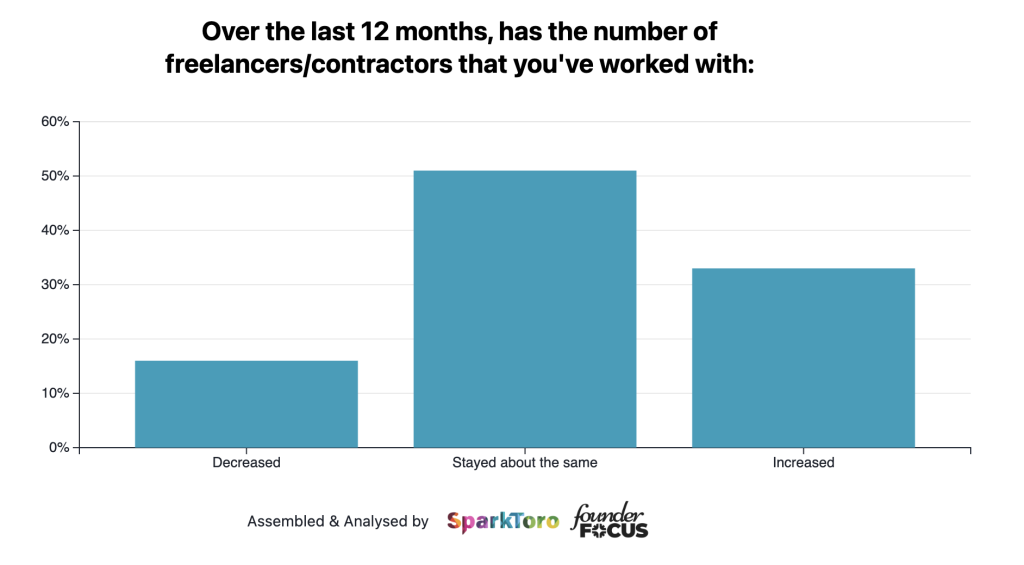 Whilst half said that the number of freelancers they work with has remained the same, nearly a third said they had actually increased how many they worked with.