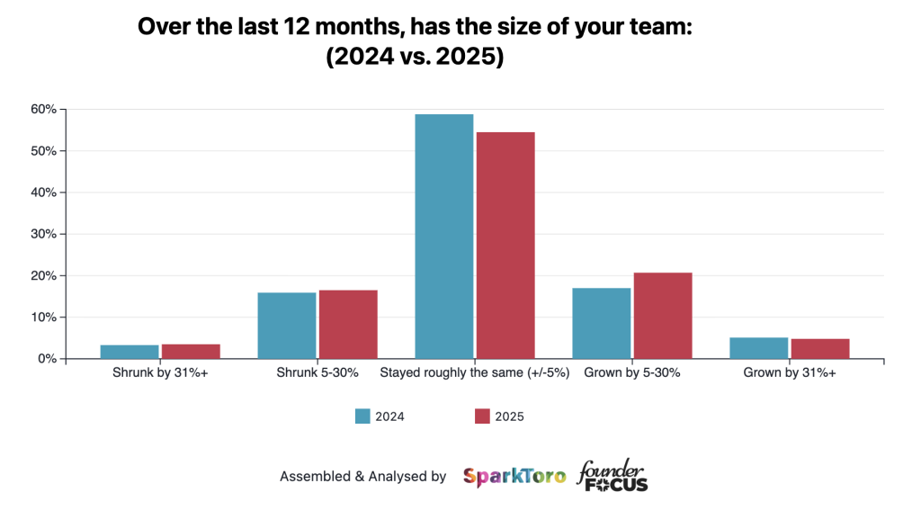 Over half of agencies said that the size of their team has remained the same as a year ago (but things are getting slowly better compared to 2024)