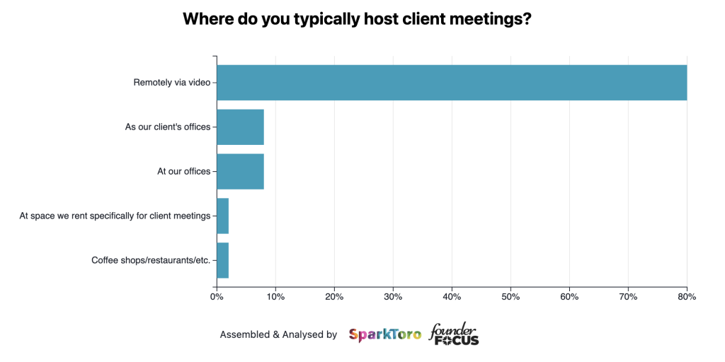 Less than 10% said that they hosted meetings in person at their own offices, with a similar number hosting them at client offices.